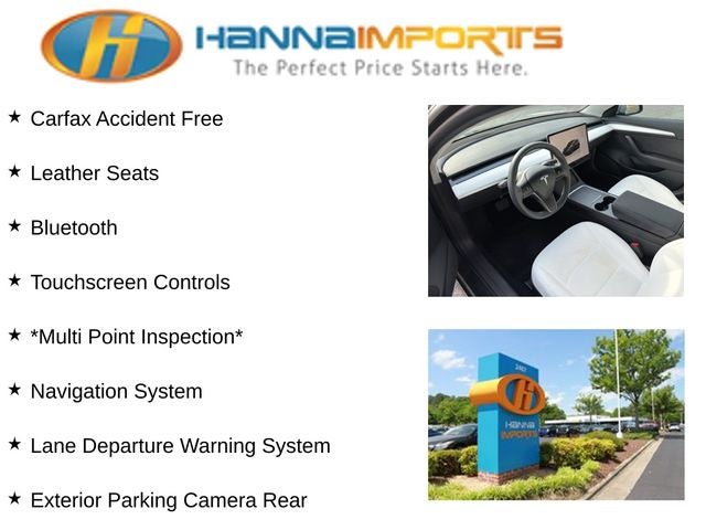 Why shop with Hanna Imports? We specialize in hand-selecting top-quality used cars, trucks, and SUVs for drivers across Raleigh, Durham, Cary, Chapel Hill, and the greater Triangle area of North Carolina. Our massive selection of 1,000+ vehicles on our Raleigh lot is carefully curated to include the most sought-after models, all priced below market value. We believe in transparency and efficiency—our vehicles are aggressively priced from the start, which means no haggling, no hassle, and no wasted time. The price you see is our absolute best price. Whether you're coming from Wake Forest, Apex, Garner, or anywhere in central NC, we’re committed to making your car-buying experience smooth, affordable, and enjoyable. Come see why Hanna Imports is one of the most trusted used car dealerships in North Carolina! Used Tesla Model 3 in Raleigh. Used Tesla Model 3 in North Carolina, Exterior Parking Camera Rear, Lane Departure Warning System, Navigation System, 4-Wheel Disc Brakes, 8 Speakers, ABS brakes, Air Conditioning, Alloy wheels, Audio memory, Auto High-beam Headlights, Auto-dimming door mirrors, Auto-dimming Rear-View mirror, Automatic temperature control, Brake assist, Bumpers: body-color, Compass, Delay-off headlights, Driver door bin, Driver vanity mirror, Dual front impact airbags, Dual front side impact airbags, Electronic Stability Control, Emergency communication system, Four wheel independent suspension, Front anti-roll bar, Front Bucket Seats, Front Center Armrest, Front dual zone A/C, Front reading lights, Fully automatic headlights, Genuine wood dashboard insert, Heated door mirrors, Heated Front Bucket Seats, Heated front seats, Heated rear seats, Heated steering wheel, HVAC memory, Illuminated entry, Knee airbag, Low tire pressure warning, Memory seat, Occupant sensing airbag, Outside temperature display, Overhead airbag, Passenger door bin, Passenger vanity mirror, Power door mirrors, Power driver seat, Power passenger seat, Power steering, Power windows, Premium Seat Trim, Radio data system, Radio: Upgraded Audio System, Rain sensing wipers, Rear reading lights, Rear seat center armrest, Rear window defroster, Security system, Speed control, Speed-sensing steering, Split folding rear seat, Steering wheel memory, Steering wheel mounted A/C controls, Steering wheel mounted audio controls, Telescoping steering wheel, Tilt steering wheel, Traction control, Trip computer, Variably intermittent wipers, and Wheels: 18 x 8.5 Aero.