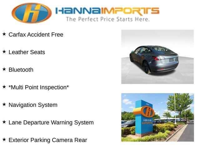 Why shop with Hanna Imports? We specialize in hand-selecting top-quality used cars, trucks, and SUVs for drivers across Raleigh, Durham, Cary, Chapel Hill, and the greater Triangle area of North Carolina. Our massive selection of 1,000+ vehicles on our Raleigh lot is carefully curated to include the most sought-after models, all priced below market value. We believe in transparency and efficiency—our vehicles are aggressively priced from the start, which means no haggling, no hassle, and no wasted time. The price you see is our absolute best price. Whether you're coming from Wake Forest, Apex, Garner, or anywhere in central NC, we’re committed to making your car-buying experience smooth, affordable, and enjoyable. Come see why Hanna Imports is one of the most trusted used car dealerships in North Carolina! Used Tesla Model 3 in Raleigh. Used Tesla Model 3 in North Carolina, Exterior Parking Camera Rear, Lane Departure Warning System, Navigation System, 4-Wheel Disc Brakes, 8 Speakers, ABS brakes, Air Conditioning, Alloy wheels, Audio memory, Auto High-beam Headlights, Auto-dimming door mirrors, Auto-dimming Rear-View mirror, Automatic temperature control, Brake assist, Bumpers: body-color, Compass, Delay-off headlights, Driver door bin, Driver vanity mirror, Dual front impact airbags, Dual front side impact airbags, Electronic Stability Control, Emergency communication system, Four wheel independent suspension, Front anti-roll bar, Front Bucket Seats, Front Center Armrest, Front dual zone A/C, Front reading lights, Fully automatic headlights, Genuine wood dashboard insert, Heated door mirrors, Heated Front Bucket Seats, Heated front seats, Heated rear seats, Heated steering wheel, HVAC memory, Illuminated entry, Knee airbag, Low tire pressure warning, Memory seat, Occupant sensing airbag, Outside temperature display, Overhead airbag, Passenger door bin, Passenger vanity mirror, Power door mirrors, Power driver seat, Power passenger seat, Power steering, Power windows, Premium Seat Trim, Radio data system, Radio: Upgraded Audio System, Rain sensing wipers, Rear reading lights, Rear seat center armrest, Rear window defroster, Security system, Speed control, Speed-sensing steering, Split folding rear seat, Steering wheel memory, Steering wheel mounted A/C controls, Steering wheel mounted audio controls, Telescoping steering wheel, Tilt steering wheel, Traction control, Trip computer, Variably intermittent wipers, and Wheels: 18 x 8.5 Aero.