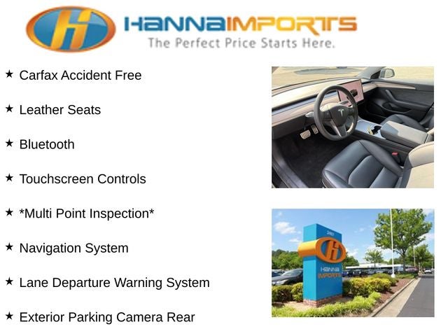 Why shop with Hanna Imports? We specialize in hand-selecting top-quality used cars, trucks, and SUVs for drivers across Raleigh, Durham, Cary, Chapel Hill, and the greater Triangle area of North Carolina. Our massive selection of 1,000+ vehicles on our Raleigh lot is carefully curated to include the most sought-after models, all priced below market value. We believe in transparency and efficiency—our vehicles are aggressively priced from the start, which means no haggling, no hassle, and no wasted time. The price you see is our absolute best price. Whether you're coming from Wake Forest, Apex, Garner, or anywhere in central NC, we’re committed to making your car-buying experience smooth, affordable, and enjoyable. Come see why Hanna Imports is one of the most trusted used car dealerships in North Carolina! Used Tesla Model 3 in Raleigh. Used Tesla Model 3 in North Carolina, Model 3 Performance, AWD, Exterior Parking Camera Rear, Heated Front Bucket Seats, Lane Departure Warning System, Navigation System, Premium Seat Trim, 14 Speakers, 4-Wheel Disc Brakes, ABS brakes, Air Conditioning, Alloy wheels, Audio memory, Auto High-beam Headlights, Auto-dimming door mirrors, Auto-dimming Rear-View mirror, Automatic temperature control, Brake assist, Bumpers: body-color, Compass, Delay-off headlights, Driver door bin, Driver vanity mirror, Dual front impact airbags, Dual front side impact airbags, Electronic Stability Control, Emergency communication system, Four wheel independent suspension, Front anti-roll bar, Front Bucket Seats, Front Center Armrest, Front dual zone A/C, Front fog lights, Front reading lights, Fully automatic headlights, Genuine wood dashboard insert, Heated door mirrors, Heated front seats, Heated rear seats, Heated steering wheel, HVAC memory, Illuminated entry, Knee airbag, Low tire pressure warning, Memory seat, Occupant sensing airbag, Outside temperature display, Overhead airbag, Passenger door bin, Passenger vanity mirror, Power door mirrors, Power driver seat, Power passenger seat, Power steering, Power windows, Premium Audio System, Radio data system, Rain sensing wipers, Rear reading lights, Rear seat center armrest, Rear window defroster, Security system, Speed control, Speed-sensing steering, Split folding rear seat, Spoiler, Steering wheel memory, Steering wheel mounted A/C controls, Steering wheel mounted audio controls, Telescoping steering wheel, Tilt steering wheel, Traction control, Trip computer, Variably intermittent wipers, and Wheels: 20 x 9.0 Uberturbine.
