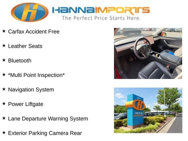 Why shop with Hanna Imports? We specialize in hand-selecting top-quality used cars, trucks, and SUVs for drivers across Raleigh, Durham, Cary, Chapel Hill, and the greater Triangle area of North Carolina. Our massive selection of 1,000+ vehicles on our Raleigh lot is carefully curated to include the most sought-after models, all priced below market value. We believe in transparency and efficiency—our vehicles are aggressively priced from the start, which means no haggling, no hassle, and no wasted time. The price you see is our absolute best price. Whether you're coming from Wake Forest, Apex, Garner, or anywhere in central NC, we’re committed to making your car-buying experience smooth, affordable, and enjoyable. Come see why Hanna Imports is one of the most trusted used car dealerships in North Carolina! Used Tesla Model Y in Raleigh. Used Tesla Model Y in North Carolina, Model Y Long Range, AWD, Exterior Parking Camera Rear, Heated front seats, Heated rear seats, Lane Departure Warning System, Navigation System, Power Liftgate, 14 Speakers, 4-Wheel Disc Brakes, 5 Seat Interior, 9.0 Axle Ratio, ABS brakes, Air Conditioning, Alloy wheels, Audio memory, Auto High-beam Headlights, Auto tilt-away steering wheel, Auto-dimming door mirrors, Auto-dimming Rear-View mirror, Automatic temperature control, Brake assist, Bumpers: body-color, Compass, Delay-off headlights, Driver door bin, Driver vanity mirror, Dual front impact airbags, Dual front side impact airbags, Electronic Stability Control, Emergency communication system, Four wheel independent suspension, Front anti-roll bar, Front Bucket Seats, Front Center Armrest, Front dual zone A/C, Front fog lights, Front reading lights, Fully automatic headlights, Genuine wood dashboard insert, Heated door mirrors, Heated steering wheel, HVAC memory, Illuminated entry, Knee airbag, Low tire pressure warning, Memory seat, Occupant sensing airbag, Outside temperature display, Overhead airbag, Passenger door bin, Passenger vanity mirror, Power door mirrors, Power driver seat, Power passenger seat, Power steering, Power windows, Premium Audio System, Radio data system, Rain sensing wipers, Rear reading lights, Rear seat center armrest, Rear window defroster, Security system, Speed control, Speed-sensing steering, Split folding rear seat, Steering wheel memory, Steering wheel mounted A/C controls, Steering wheel mounted audio controls, Telescoping steering wheel, Tilt steering wheel, Traction control, Trip computer, Variably intermittent wipers, Vegan Leather Seat Trim, and Wheels: 19 x 9.5 Gemini.