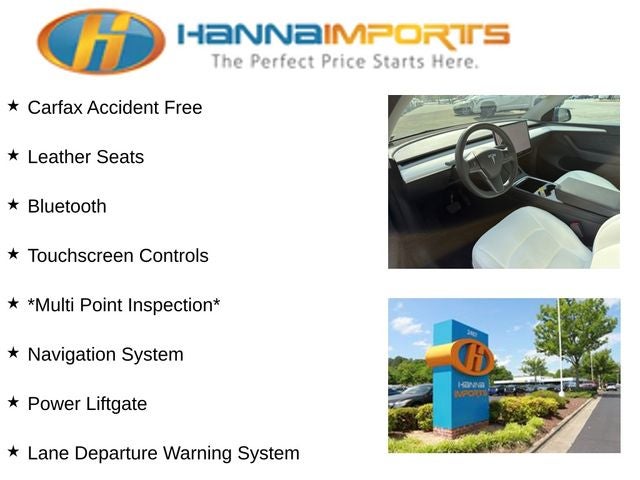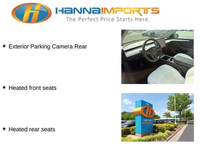 Why shop with Hanna Imports? We specialize in hand-selecting top-quality used cars, trucks, and SUVs for drivers across Raleigh, Durham, Cary, Chapel Hill, and the greater Triangle area of North Carolina. Our massive selection of 1,000+ vehicles on our Raleigh lot is carefully curated to include the most sought-after models, all priced below market value. We believe in transparency and efficiency—our vehicles are aggressively priced from the start, which means no haggling, no hassle, and no wasted time. The price you see is our absolute best price. Whether you're coming from Wake Forest, Apex, Garner, or anywhere in central NC, we’re committed to making your car-buying experience smooth, affordable, and enjoyable. Come see why Hanna Imports is one of the most trusted used car dealerships in North Carolina! Used Tesla Model Y in Raleigh. Used Tesla Model Y in North Carolina, Model Y Long Range, AWD, Exterior Parking Camera Rear, Heated front seats, Heated rear seats, Lane Departure Warning System, Navigation System, Power Liftgate, 14 Speakers, 4-Wheel Disc Brakes, 5 Seat Interior, 9.0 Axle Ratio, ABS brakes, Air Conditioning, Alloy wheels, Audio memory, Auto High-beam Headlights, Auto tilt-away steering wheel, Auto-dimming door mirrors, Auto-dimming Rear-View mirror, Automatic temperature control, Brake assist, Bumpers: body-color, Compass, Delay-off headlights, Driver door bin, Driver vanity mirror, Dual front impact airbags, Dual front side impact airbags, Electronic Stability Control, Emergency communication system, Four wheel independent suspension, Front anti-roll bar, Front Bucket Seats, Front Center Armrest, Front dual zone A/C, Front fog lights, Front reading lights, Fully automatic headlights, Genuine wood dashboard insert, Heated door mirrors, Heated steering wheel, HVAC memory, Illuminated entry, Knee airbag, Low tire pressure warning, Memory seat, Occupant sensing airbag, Outside temperature display, Overhead airbag, Passenger door bin, Passenger vanity mirror, Power door mirrors, Power driver seat, Power passenger seat, Power steering, Power windows, Premium Audio System, Radio data system, Rain sensing wipers, Rear reading lights, Rear seat center armrest, Rear window defroster, Security system, Speed control, Speed-sensing steering, Split folding rear seat, Steering wheel memory, Steering wheel mounted A/C controls, Steering wheel mounted audio controls, Telescoping steering wheel, Tilt steering wheel, Traction control, Trip computer, Variably intermittent wipers, Vegan Leather Seat Trim, and Wheels: 19 x 9.5 Gemini.