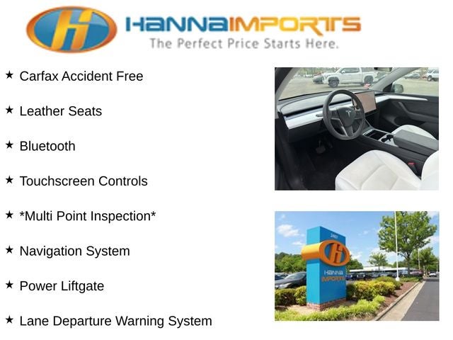 Why shop with Hanna Imports? We specialize in hand-selecting top-quality used cars, trucks, and SUVs for drivers across Raleigh, Durham, Cary, Chapel Hill, and the greater Triangle area of North Carolina. Our massive selection of 1,000+ vehicles on our Raleigh lot is carefully curated to include the most sought-after models, all priced below market value. We believe in transparency and efficiency—our vehicles are aggressively priced from the start, which means no haggling, no hassle, and no wasted time. The price you see is our absolute best price. Whether you're coming from Wake Forest, Apex, Garner, or anywhere in central NC, we’re committed to making your car-buying experience smooth, affordable, and enjoyable. Come see why Hanna Imports is one of the most trusted used car dealerships in North Carolina! Used Tesla Model Y in Raleigh. Used Tesla Model Y in North Carolina, Model Y Long Range, AWD, Exterior Parking Camera Rear, Heated front seats, Heated rear seats, Lane Departure Warning System, Navigation System, Power Liftgate, 14 Speakers, 4-Wheel Disc Brakes, 5 Seat Interior, 9.0 Axle Ratio, ABS brakes, Air Conditioning, Alloy wheels, Audio memory, Auto High-beam Headlights, Auto tilt-away steering wheel, Auto-dimming door mirrors, Auto-dimming Rear-View mirror, Automatic temperature control, Brake assist, Bumpers: body-color, Compass, Delay-off headlights, Driver door bin, Driver vanity mirror, Dual front impact airbags, Dual front side impact airbags, Electronic Stability Control, Emergency communication system, Four wheel independent suspension, Front anti-roll bar, Front Bucket Seats, Front Center Armrest, Front dual zone A/C, Front fog lights, Front reading lights, Fully automatic headlights, Genuine wood dashboard insert, Heated door mirrors, Heated steering wheel, HVAC memory, Illuminated entry, Knee airbag, Low tire pressure warning, Memory seat, Occupant sensing airbag, Outside temperature display, Overhead airbag, Passenger door bin, Passenger vanity mirror, Power door mirrors, Power driver seat, Power passenger seat, Power steering, Power windows, Premium Audio System, Radio data system, Rain sensing wipers, Rear reading lights, Rear seat center armrest, Rear window defroster, Security system, Speed control, Speed-sensing steering, Split folding rear seat, Steering wheel memory, Steering wheel mounted A/C controls, Steering wheel mounted audio controls, Telescoping steering wheel, Tilt steering wheel, Traction control, Trip computer, Variably intermittent wipers, Vegan Leather Seat Trim, and Wheels: 19 x 9.5 Gemini.