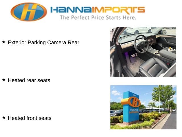 Why shop with Hanna Imports? We specialize in hand-selecting top-quality used cars, trucks, and SUVs for drivers across Raleigh, Durham, Cary, Chapel Hill, and the greater Triangle area of North Carolina. Our massive selection of 1,000+ vehicles on our Raleigh lot is carefully curated to include the most sought-after models, all priced below market value. We believe in transparency and efficiency—our vehicles are aggressively priced from the start, which means no haggling, no hassle, and no wasted time. The price you see is our absolute best price. Whether you're coming from Wake Forest, Apex, Garner, or anywhere in central NC, we’re committed to making your car-buying experience smooth, affordable, and enjoyable. Come see why Hanna Imports is one of the most trusted used car dealerships in North Carolina! Used Tesla Model Y in Raleigh. Used Tesla Model Y in North Carolina, Model Y Performance, AWD, Exterior Parking Camera Rear, Heated front seats, Heated rear seats, Lane Departure Warning System, Navigation System, Power Liftgate, 14 Speakers, 4-Wheel Disc Brakes, 5 Seat Interior, 9.0 Axle Ratio, ABS brakes, Air Conditioning, Alloy wheels, Audio memory, Auto High-beam Headlights, Auto tilt-away steering wheel, Auto-dimming door mirrors, Auto-dimming Rear-View mirror, Automatic temperature control, Brake assist, Bumpers: body-color, Compass, Delay-off headlights, Driver door bin, Driver vanity mirror, Dual front impact airbags, Dual front side impact airbags, Electronic Stability Control, Emergency communication system, Four wheel independent suspension, Front anti-roll bar, Front Bucket Seats, Front Center Armrest, Front dual zone A/C, Front fog lights, Front reading lights, Fully automatic headlights, Genuine wood dashboard insert, Heated door mirrors, Heated steering wheel, HVAC memory, Illuminated entry, Knee airbag, Low tire pressure warning, Memory seat, Occupant sensing airbag, Outside temperature display, Overhead airbag, Passenger door bin, Passenger vanity mirror, Power door mirrors, Power driver seat, Power passenger seat, Power steering, Power windows, Premium Audio System, Radio data system, Rain sensing wipers, Rear reading lights, Rear seat center armrest, Rear window defroster, Security system, Speed control, Speed-sensing steering, Split folding rear seat, Spoiler, Steering wheel memory, Steering wheel mounted A/C controls, Steering wheel mounted audio controls, Telescoping steering wheel, Tilt steering wheel, Traction control, Trip computer, Variably intermittent wipers, Vegan Leather Seat Trim, and Wheels: 21 x 9.5 Fr & 21 x 10.5 Rr Uberturbine.