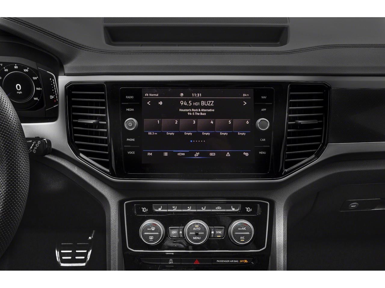 Equipped with 3.60 Axle Ratio, 4-Wheel Disc Brakes, 6 Speakers, ABS brakes, Air Conditioning, Alloy wheels, AM/FM radio: SiriusXM with 360L, Auto High-beam Headlights, Auto-dimming Rear-View mirror, Automatic temperature control, Brake assist, Bumpers: body-color, Compass, Delay-off headlights, Driver door bin, Driver vanity mirror, Dual front impact airbags, Dual front side impact airbags, Electronic Stability Control, Emergency communication system: VW Car-Net Safe & Secure 5-year, Exterior Parking Camera Rear, Four wheel independent suspension, Front anti-roll bar, Front Bucket Seats, Front Center Armrest, Front dual zone A/C, Front fog lights, Front reading lights, Fully automatic headlights, Heated Comfort Front Bucket Seats, Heated door mirrors, Heated front seats, Heated steering wheel, Illuminated entry, Leather Shift Knob, Low tire pressure warning, Memory seat, Navigation System, Occupant sensing airbag, Outside temperature display, Overhead airbag, Overhead console, Panic alarm, Passenger door bin, Passenger vanity mirror, Perforated V-Tex Leatherette Seating Surfaces, Power door mirrors, Power driver seat, Power Liftgate, Power moonroof: Panoramic, Power passenger seat, Power steering, Power windows, Radio data system, Radio: MIB3 Discover Media w/8 Touchscreen Navigation, Rain sensing wipers, Rear anti-roll bar, Rear reading lights, Rear seat center armrest, Rear window defroster, Rear window wiper, Remote keyless entry, Security system, Speed control, Speed-sensing steering, Split folding rear seat, Spoiler, Sport steering wheel, Standard Suspension, Steering wheel mounted audio controls, Tachometer, Telescoping steering wheel, Tilt steering wheel, Traction control, Trip computer, Turn signal indicator mirrors, Variably intermittent wipers, and Wheels: 20 x 8J 5-Spoke Black Painted Alloy.