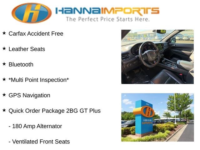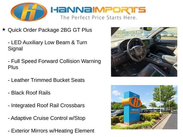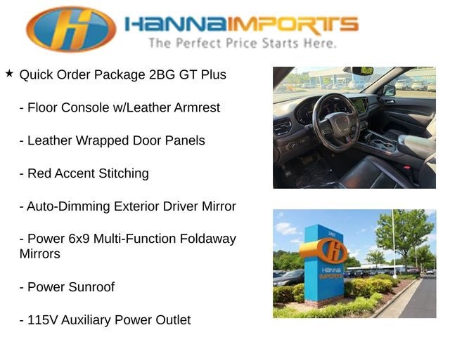 Why shop with Hanna Imports? We specialize in hand-selecting top-quality used cars, trucks, and SUVs for drivers across Raleigh, Durham, Cary, Chapel Hill, and the greater Triangle area of North Carolina. Our massive selection of 1,000+ vehicles on our Raleigh lot is carefully curated to include the most sought-after models, all priced below market value. We believe in transparency and efficiency—our vehicles are aggressively priced from the start, which means no haggling, no hassle, and no wasted time. The price you see is our absolute best price. Whether you're coming from Wake Forest, Apex, Garner, or anywhere in central NC, we’re committed to making your car-buying experience smooth, affordable, and enjoyable. Come see why Hanna Imports is one of the most trusted used car dealerships in North Carolina! Used Dodge Durango in Raleigh. Used Dodge Durango in North Carolina, Quick Order Package 2BG GT Plus (1-Year Trial (Registration Required), 10.1 Touchscreen Display, 115V Auxiliary Power Outlet, 180 Amp Alternator, 4G LTE Wi-Fi Hot Spot, 7 & 4 Pin Wiring Harness, Adaptive Cruise Control w/Stop, Apple CarPlay, Auto-Dimming Exterior Driver Mirror, Black Roof Rails, Blind Spot w/Trailer Detection, Class IV Receiver Hitch, Connected Travel & Traffic Services, Disassociated Touchscreen Display, Dual Remote USB Port - Charge Only, Exterior Mirrors w/Heating Element, Exterior Mirrors w/Memory, Exterior Mirrors w/Supplemental Signals, Floor Console w/Leather Armrest, For Details Visit DriveUconnect.com, Full Speed Forward Collision Warning Plus, Global Telematics Box Module (TBM), Gloss Black Exterior Mirrors, Google Android Auto, GPS Antenna Input, GPS Navigation, HD Radio, Heated Second Row Seats, Heavy-Duty Engine Cooling, Integrated Center Stack Radio, Integrated Roof Rail Crossbars, Integrated Voice Command w/Bluetooth®, Leather Trimmed Bucket Seats, Leather Wrapped Door Panels, LED Auxiliary Low Beam & Turn Signal, Power 6x9 Multi-Function Foldaway Mirrors, Power 8-Way Driver Memory 8-Way Passenger Seats, Power Driver/Passenger 4-Way Lumbar Adjust, Power Sunroof, Power Tilt & Telescopic Steering Column, Radio: Uconnect 5 Nav w/10.1 Display, Radio/Driver Seat/Mirrors Memory, Rear Load Leveling Suspension, Red Accent St