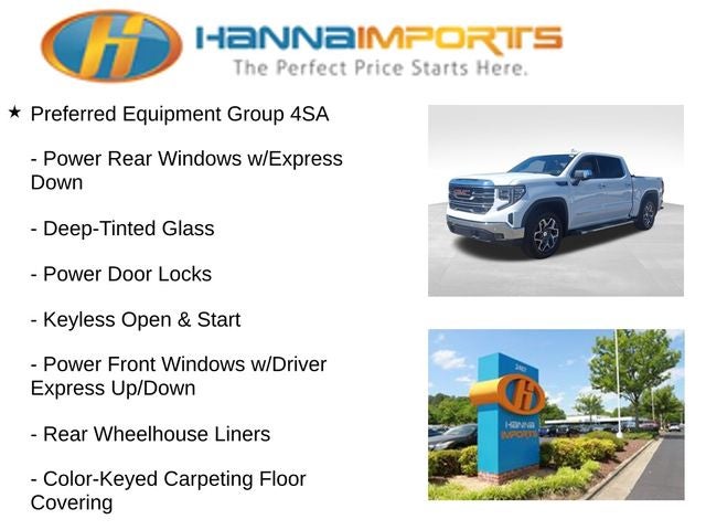 Why shop with Hanna Imports? We specialize in hand-selecting top-quality used cars, trucks, and SUVs for drivers across Raleigh, Durham, Cary, Chapel Hill, and the greater Triangle area of North Carolina. Our massive selection of 1,000+ vehicles on our Raleigh lot is carefully curated to include the most sought-after models, all priced below market value. We believe in transparency and efficiency—our vehicles are aggressively priced from the start, which means no haggling, no hassle, and no wasted time. The price you see is our absolute best price. Whether you're coming from Wake Forest, Apex, Garner, or anywhere in central NC, we’re committed to making your car-buying experience smooth, affordable, and enjoyable. Come see why Hanna Imports is one of the most trusted used car dealerships in North Carolina! Used GMC Sierra 1500 in Raleigh. Used GMC Sierra 1500 in North Carolina, High Capacity Suspension Package, Preferred Equipment Group 4SA (120-Volt Interior Power Outlet, 170 Amp Alternator, 2 Charge/Data USB Ports, 2 Type-C Charge-Only Rear USB Ports, 6-Speaker Audio System Feature, Auto-Locking Rear Differential, Auxiliary External Transmission Oil Cooler, Chrome Header & Chrome Grille Insert Bars, Color-Keyed Carpeting Floor Covering, Deep-Tinted Glass, Electric Rear-Window Defogger, Front Frame-Mounted Black Recovery Hooks, Front Rain-Sensing Wipers, GMC Connected Access Capable, HD Rear Vision Camera, Keyless Open & Start, LED Cargo Area Lighting, Manual Tilt-Wheel & Telescoping Steering Column, OnStar & GMC Connected Services Capable, Perimeter Lighting, Power Door Locks, Power Front Passenger Windows w/Express Up/Down, Power Front Windows w/Driver Express Up/Down, Power Rea