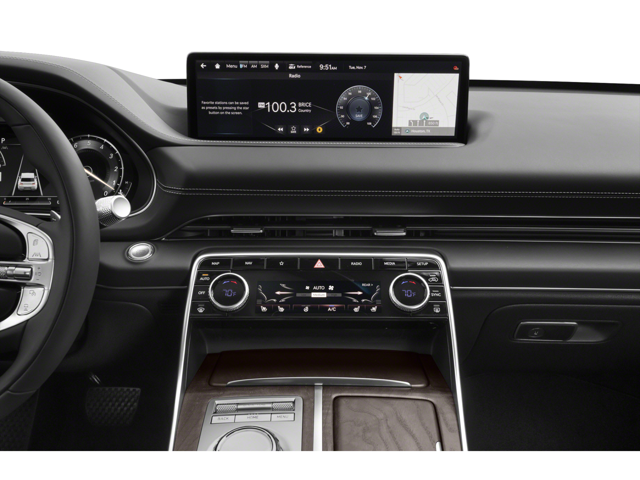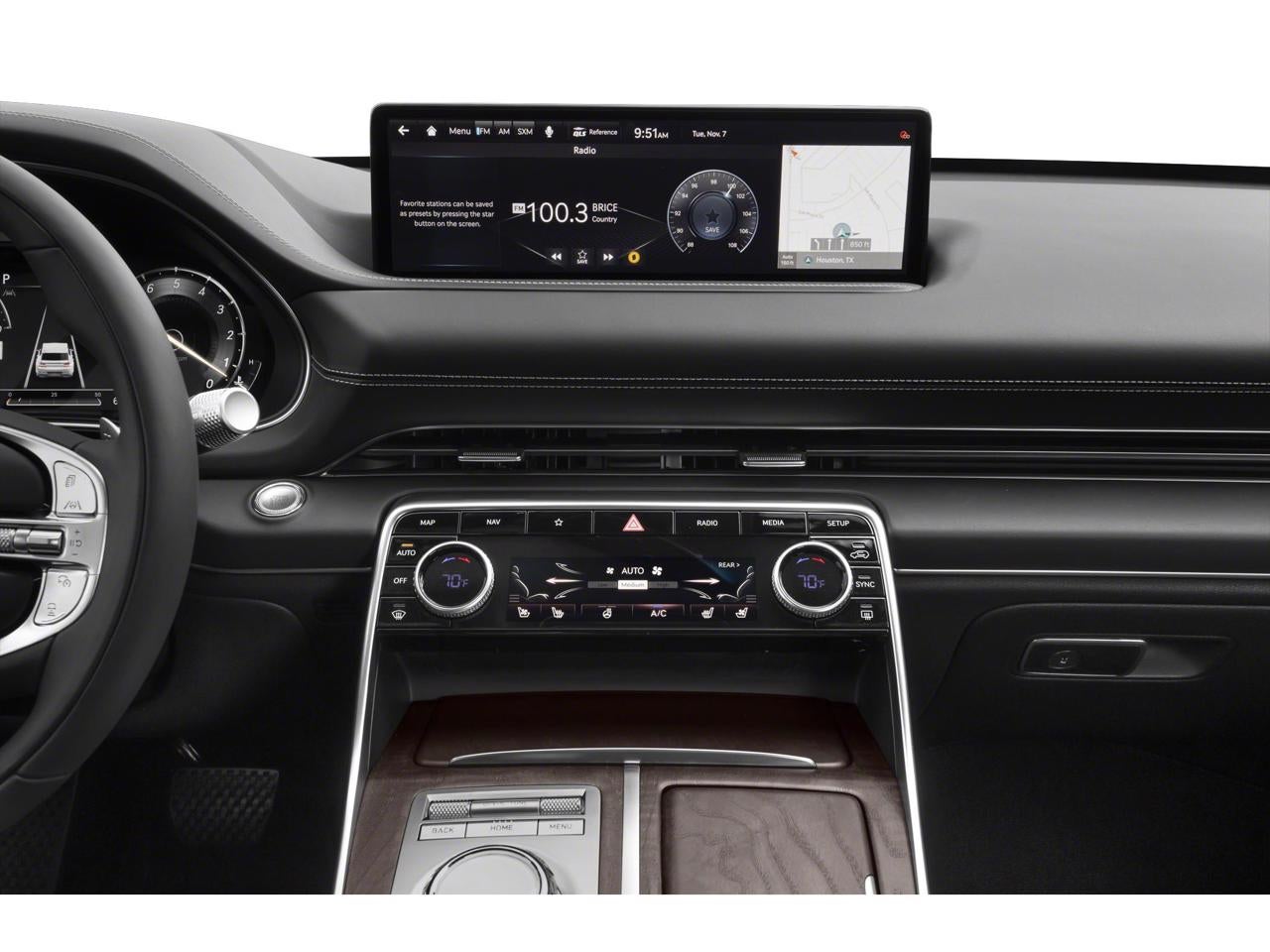 - Radio:Lexicon Premium Audio System -inc: Quantum logic surround sound, 21 high efficiency speakers, Lexicon 14-channel digital external amplifier, 14.5" navigation system, AM/FM/HD Radio, SiriusXM Radio w/90-day subscription (not available in AK or HI), Apple CarPlay and Android Auto, 12 speakers, Bluetooth® hands-free phone system w/audio streaming, wireless phone charger, Wi-Fi hotspot, steering wheel controls, USB and Genesis Connected Services