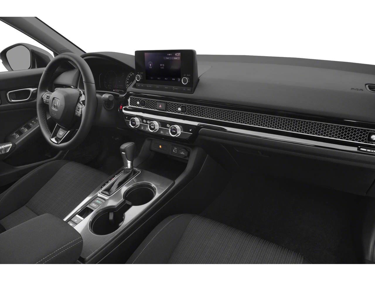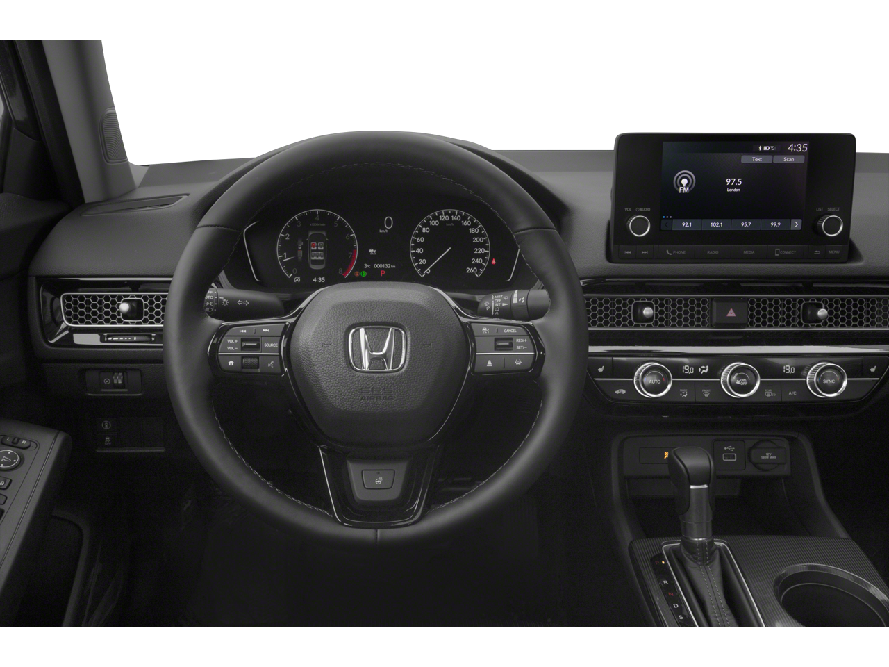 Equipped with Black w/Leather-Trimmed Seating Surfaces, 17 Alloy Wheels, 4-Wheel Disc Brakes, 8 Speakers, ABS brakes, Adaptive Cruise Control: Adaptive Cruise Control (ACC) with Low-Speed Follow, Air Conditioning, Alloy wheels, AM/FM radio, Apple CarPlay/Android Auto, Auto High-beam Headlights, Automatic temperature control, Blind Spot Information (BSI) System warning, Brake assist, Bumpers: body-color, Delay-off headlights, Driver door bin, Driver vanity mirror, Dual front impact airbags, Dual front side impact airbags, Electronic Stability Control, Emergency communication system: HondaLink, Exterior Parking Camera Rear, Four wheel independent suspension, Front anti-roll bar, Front Bucket Seats, Front Center Armrest, Front dual zone A/C, Front reading lights, Fully automatic headlights, Heated door mirrors, Heated Front Bucket Seats, Heated front seats, Illuminated entry, Knee airbag, Lane departure: Lane Keeping Assist System (LKAS) active, Leather Shift Knob, Leather steering wheel, Leather-Trimmed Seating Surfaces, Low tire pressure warning, Occupant sensing airbag, Outside temperature display, Overhead airbag, Panic alarm, Passenger door bin, Passenger vanity mirror, Power door mirrors, Power driver seat, Power moonroof, Power steering, Power windows, Radio data system, Radio: 180-Watt Audio System, Rear anti-roll bar, Rear seat center armrest, Rear side impact airbag, Rear window defroster, Rear window wiper, Remote keyless entry, Security system, Speed control, Speed-sensing steering, Split folding rear seat, Steering wheel mounted audio controls, Tachometer, Telescoping steering wheel, Tilt steering wheel, Traction control, Trip computer, Variably intermittent wipers, and Voltmeter.