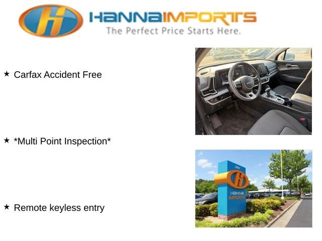 Why shop with Hanna Imports? We specialize in hand-selecting top-quality used cars, trucks, and SUVs for drivers across Raleigh, Durham, Cary, Chapel Hill, and the greater Triangle area of North Carolina. Our massive selection of 1,000+ vehicles on our Raleigh lot is carefully curated to include the most sought-after models, all priced below market value. We believe in transparency and efficiency—our vehicles are aggressively priced from the start, which means no haggling, no hassle, and no wasted time. The price you see is our absolute best price. Whether you're coming from Wake Forest, Apex, Garner, or anywhere in central NC, we’re committed to making your car-buying experience smooth, affordable, and enjoyable. Come see why Hanna Imports is one of the most trusted used car dealerships in North Carolina! Used Kia Sportage in Raleigh. Used Kia Sportage in North Carolina, Sportage LX, Remote keyless entry, 17 Alloy Wheels, 4-Wheel Disc Brakes, 6 Speakers, ABS brakes, Air Conditioning, Alloy wheels, AM/FM radio, Auto High-beam Headlights, Axle Ratio: 3.648, Brake assist, Bumpers: body-color, Carpeted Floor Mats, Cloth Seat Trim, Delay-off headlights, Driver door bin, Driver vanity mirror, Dual front impact airbags, Dual front side impact airbags, Electronic Stability Control, Four wheel independent suspension, Front anti-roll bar, Front Bucket Seats, Front Center Armrest, Fully automatic headlights, Illuminated entry, Low tire pressure warning, Occupant sensing airbag, Outside temperature display, Overhead airbag, Overhead console, Panic alarm, Passenger door bin, Passenger vanity mirror, Power door mirrors, Power steering, Power windows, Radio: AM/FM/HD Audio System, Rear anti-roll bar, Rear seat center armrest, Rear side impact airbag, Rear window defroster, Rear window wiper, Security system, Speed control, Speed-sensing steering, Split folding rear seat, Spoiler, Steering wheel mounted audio controls, Tachometer, Telescoping steering wheel, Tilt steering wheel, Traction control, Trip computer, and Variably intermittent wipers.