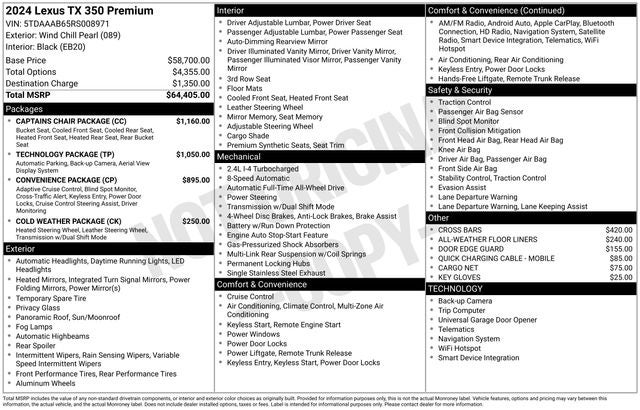 2024 Lexus TX 350 Premium Wind Chill Pearl Odometer is 7778 miles below market average! 20/26 City/Highway MPG