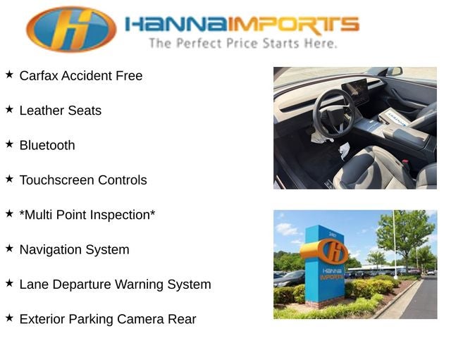 Why shop with Hanna Imports? We specialize in hand-selecting top-quality used cars, trucks, and SUVs for drivers across Raleigh, Durham, Cary, Chapel Hill, and the greater Triangle area of North Carolina. Our massive selection of 1,000+ vehicles on our Raleigh lot is carefully curated to include the most sought-after models, all priced below market value. We believe in transparency and efficiency—our vehicles are aggressively priced from the start, which means no haggling, no hassle, and no wasted time. The price you see is our absolute best price. Whether you're coming from Wake Forest, Apex, Garner, or anywhere in central NC, we’re committed to making your car-buying experience smooth, affordable, and enjoyable. Come see why Hanna Imports is one of the most trusted used car dealerships in North Carolina! Used Tesla Model 3 in Raleigh. Used Tesla Model 3 in North Carolina, Exterior Parking Camera Rear, Heated & Ventilated Front Bucket Seats, Heated rear seats, Lane Departure Warning System, Navigation System, 4-Wheel Disc Brakes, 9 Speakers, ABS brakes, Air Conditioning, Alloy wheels, Audio memory, Auto High-beam Headlights, Auto-dimming door mirrors, Auto-dimming Rear-View mirror, Automatic temperature control, Brake assist, Bumpers: body-color, Compass, Delay-off headlights, Driver door bin, Driver vanity mirror, Dual front impact airbags, Dual front side impact airbags, Electronic Stability Control, Emergency communication system, Four wheel independent suspension, Front anti-roll bar, Front Bucket Seats, Front Center Armrest w/Storage, Front dual zone A/C, Front reading lights, Fully automatic headlights, Heated door mirrors, Heated front seats, Heated steering wheel, HVAC memory, Illuminated entry, Knee airbag, Low tire pressure warning, Memory seat, Occupant sensing airbag, Outside temperature display, Overhead airbag, Passenger door bin, Passenger vanity mirror, Power door mirrors, Power driver seat, Power passenger seat, Power steering, Power windows, Radio data system, Radio: Custom Audio System, Rain sensing wipers, Rear air conditioning, Rear audio controls, Rear reading lights, Rear seat center armrest, Rear window defroster, Security system, Speed control, Speed-sensing steering, Split folding rear seat, Steering wheel memory, Steering wheel mounted A/C controls, Steering wheel mounted audio controls, Telescoping steering wheel, Tilt steering wheel, Traction control, Trip computer, Variably intermittent wipers, Vegan Leather Seat Trim, and Wheels: 18 x 8.5 Photon.