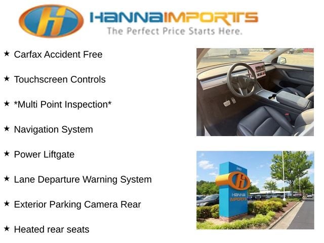 Why shop with Hanna Imports? We specialize in hand-selecting top-quality used cars, trucks, and SUVs for drivers across Raleigh, Durham, Cary, Chapel Hill, and the greater Triangle area of North Carolina. Our massive selection of 1,000+ vehicles on our Raleigh lot is carefully curated to include the most sought-after models, all priced below market value. We believe in transparency and efficiency—our vehicles are aggressively priced from the start, which means no haggling, no hassle, and no wasted time. The price you see is our absolute best price. Whether you're coming from Wake Forest, Apex, Garner, or anywhere in central NC, we’re committed to making your car-buying experience smooth, affordable, and enjoyable. Come see why Hanna Imports is one of the most trusted used car dealerships in North Carolina! Used Tesla Model Y in Raleigh. Used Tesla Model Y in North Carolina, Model Y Performance, AWD, Exterior Parking Camera Rear, Heated front seats, Heated rear seats, Lane Departure Warning System, Navigation System, Power Liftgate, Wheels: 21 x 9.5 Fr & 21 x 10.5 Rr Uberturbine, 14 Speakers, 4-Wheel Disc Brakes, 5 Seat Interior, 9.0 Axle Ratio, ABS brakes, Air Conditioning, Alloy wheels, Audio memory, Auto High-beam Headlights, Auto tilt-away steering wheel, Auto-dimming door mirrors, Auto-dimming Rear-View mirror, Automatic temperature control, Brake assist, Bumpers: body-color, Compass, Delay-off headlights, Driver door bin, Driver vanity mirror, Dual front impact airbags, Dual front side impact airbags, Electronic Stability Control, Emergency communication system, Four wheel independent suspension, Front anti-roll bar, Front Bucket Seats, Front Center Armrest, Front dual zone A/C, Front fog lights, Front reading lights, Fully automatic headlights, Genuine wood dashboard insert, Heated door mirrors, Heated steering wheel, HVAC memory, Illuminated entry, Knee airbag, Low tire pressure warning, Memory seat, Occupant sensing airbag, Outside temperature display, Overhead airbag, Passenger door bin, Passenger vanity mirror, Power door mirrors, Power driver seat, Power passenger seat, Power steering, Power windows, Radio data system, Radio: Premium Audio System w/13 Speakers, Rain sensing wipers, Rear reading lights, Rear seat center armrest, Rear window defroster, Security system, Speed control, Speed-sensing steering, Split folding rear seat, Spoiler, Steering wheel memory, Steering wheel mounted A/C controls, Steering wheel mounted audio controls, Telescoping steering wheel, Tilt steering wheel, Traction control, Trip computer, Variably intermittent wipers, and Vegan Leather Seat Trim.