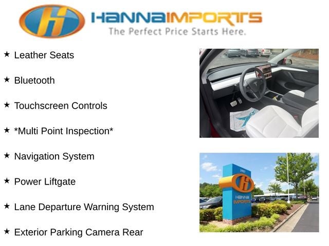 Why shop with Hanna Imports? We specialize in hand-selecting top-quality used cars, trucks, and SUVs for drivers across Raleigh, Durham, Cary, Chapel Hill, and the greater Triangle area of North Carolina. Our massive selection of 1,000+ vehicles on our Raleigh lot is carefully curated to include the most sought-after models, all priced below market value. We believe in transparency and efficiency—our vehicles are aggressively priced from the start, which means no haggling, no hassle, and no wasted time. The price you see is our absolute best price. Whether you're coming from Wake Forest, Apex, Garner, or anywhere in central NC, we’re committed to making your car-buying experience smooth, affordable, and enjoyable. Come see why Hanna Imports is one of the most trusted used car dealerships in North Carolina! Used Tesla Model Y in Raleigh. Used Tesla Model Y in North Carolina, Model Y Performance, AWD, Exterior Parking Camera Rear, Lane Departure Warning System, Navigation System, Power Liftgate, 14 Speakers, 4-Wheel Disc Brakes, 5 Seat Interior, 9.0 Axle Ratio, ABS brakes, Air Conditioning, Alloy wheels, Audio memory, Auto High-beam Headlights, Auto tilt-away steering wheel, Auto-dimming door mirrors, Auto-dimming Rear-View mirror, Automatic temperature control, Brake assist, Bumpers: body-color, Compass, Delay-off headlights, Driver door bin, Driver vanity mirror, Dual front impact airbags, Dual front side impact airbags, Electronic Stability Control, Emergency communication system, Four wheel independent suspension, Front anti-roll bar, Front Bucket Seats, Front Center Armrest, Front dual zone A/C, Front fog lights, Front reading lights, Fully automatic headlights, Genuine wood dashboard insert, Heated door mirrors, Heated front seats, Heated rear seats, Heated steering wheel, HVAC memory, Illuminated entry, Knee airbag, Low tire pressure warning, Memory seat, Occupant sensing airbag, Outside temperature display, Overhead airbag, Passenger door bin, Passenger vanity mirror, Power door mirrors, Power driver seat, Power passenger seat, Power steering, Power windows, Radio data system, Radio: Premium Audio System w/13 Speakers, Rain sensing wipers, Rear reading lights, Rear seat center armrest, Rear window defroster, Security system, Speed control, Speed-sensing steering, Split folding rear seat, Spoiler, Steering wheel memory, Steering wheel mounted A/C controls, Steering wheel mounted audio controls, Telescoping steering wheel, Tilt steering wheel, Traction control, Trip computer, Variably intermittent wipers, Vegan Leather Seat Trim, and Wheels: 21 x 9.5 Fr & 21 x 10.5 Rr Uberturbine.