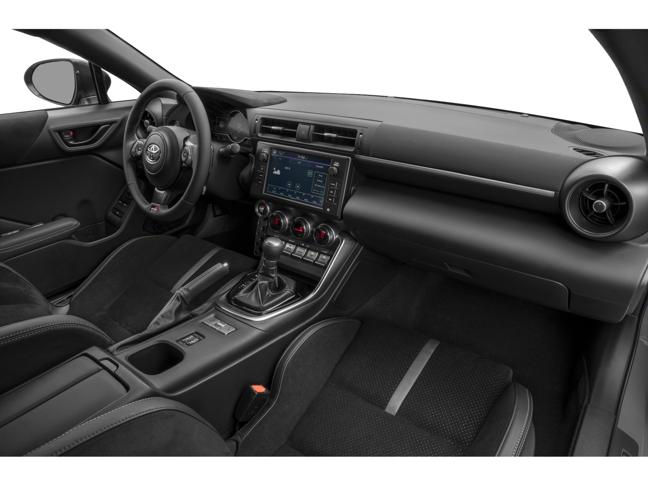 Equipped with 2-Stage Heated Sport Front Seats, 4-Wheel Disc Brakes, 8 Speakers, ABS brakes, Air Conditioning, Alloy wheels, AM/FM radio: SiriusXM, Apple CarPlay/Android Auto, Automatic temperature control, Brake assist, Bumpers: body-color, Delay-off headlights, Driver door bin, Driver vanity mirror, Dual front impact airbags, Dual front side impact airbags, Electronic Stability Control, Emergency communication system: Safety Connect (1-year trial), Exterior Parking Camera Rear, Four wheel independent suspension, Front anti-roll bar, Front Bucket Seats, Front dual zone A/C, Front reading lights, Fully automatic headlights, Heated door mirrors, Heated front seats, Illuminated entry, Knee airbag, Leather Shift Knob, Leather steering wheel, Low tire pressure warning, Occupant sensing airbag, Outside temperature display, Overhead airbag, Panic alarm, Passenger door bin, Passenger vanity mirror, Power door mirrors, Power steering, Power windows, Radio data system, Radio: GR86 Audio, Rear anti-roll bar, Rear window defroster, Remote keyless entry, Security system, Speed control, Spoiler, Steering wheel mounted audio controls, Tachometer, Telescoping steering wheel, Tilt steering wheel, Traction control, Trip computer, Ultrasuede Seat Trim w/Leather Bolsters, Variably intermittent wipers, and Wheels: 18 Matte-Black-Painted Alloy.