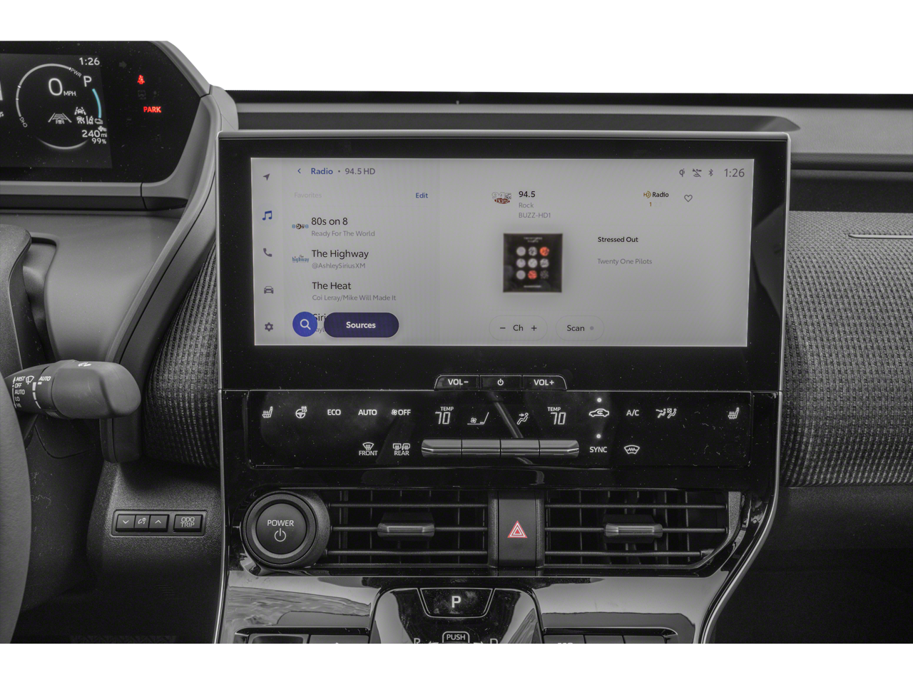 - Radio: 12.3" Toyota Audio Multimedia w/6 Speakers -inc: Qi-compatible wireless smartphone charging, 2 front and 2 rear USB-C charge ports, 1 front USB-A media port, wireless Apple CarPlay and Android Auto compatibility, SiriusXM w/3-month trial subscription, Drive Connect w/3-year trial subscription, Safety Connect w/up to 10-year trial subscription, Service Connect w/up to 10-year trial subscription, Remote Connect w/3-year trial subscription and Wi-Fi Connect w/30-day or up to 3 GB trial subscription