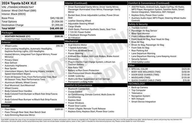 2024 Toyota bZ4X XLE Wind Chill Pearl Odometer is 9418 miles below market average! 114/94 City/Highway MPG