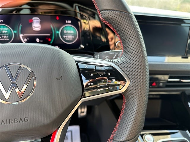Equipped with 4-Wheel Disc Brakes, 7 Speakers, ABS brakes, Adaptive suspension, Air Conditioning, Alloy wheels, AM/FM radio, Auto-dimming Rear-View mirror, Automatic temperature control, Brake assist, Bumpers: body-color, Cloth Seating Surfaces, Compass, Delay-off headlights, Driver door bin, Driver vanity mirror, Dual front impact airbags, Dual front side impact airbags, Electronic Stability Control, Emergency communication system: VW Car-Net Safe & Secure 5-year, Exterior Parking Camera Rear, Forward collision: FCW w/Autonomous Emergency Braking mitigation, Four wheel independent suspension, Front anti-roll bar, Front Bucket Seats, Front Center Armrest, Front fog lights, Front reading lights, Fully automatic headlights, Heated door mirrors, Heated front seats, Heated Front Top Sport Seats, Heated steering wheel, Illuminated entry, Lane Departure Warning System, Leather Shift Knob, Leather steering wheel, Low tire pressure warning, Occupant sensing airbag, Outside temperature display, Overhead airbag, Overhead console, Panic alarm, Passenger door bin, Passenger vanity mirror, Power door mirrors, Power driver seat, Power passenger seat, Power steering, Power windows, Radio data system, Radio: MIB3 Composition Color w/8.25 Touchscreen, Rain sensing wipers, Rear anti-roll bar, Rear reading lights, Rear seat center armrest, Rear window defroster, Rear window wiper, Remote keyless entry, Security system, Speed control, Speed-sensing steering, Speed-Sensitive Wipers, Split folding rear seat, Spoiler, Sport steering wheel, Steering wheel mounted audio controls, Tachometer, Telescoping steering wheel, Tilt steering wheel, Traction control, Trip computer, Turn signal indicator mirrors, Variably intermittent wipers, and Wheels: 19 Multi-Spoke Gloss Black Painted Alloy.