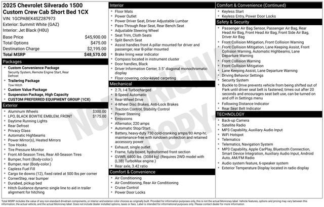 - Custom Value Package includes (PCX) Custom Convenience Package and (Z82) Trailering Package