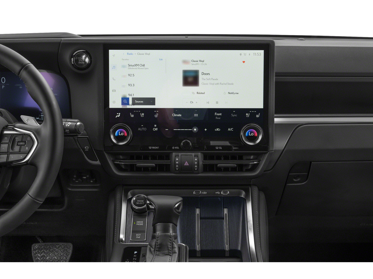 - Radio: Lexus Interface w/14" Touchscreen -inc: 10 speakers, wireless Apple CarPlay integration, Android Auto compatibility, Safety Connect (up to 10 year trial), Service Connect (up to 10 year trial), Remote Connect (3 year trial), Wi-Fi Connect (up to 30 day/3 GB trial) and Drive Connect w/Cloud Navigation, Intelligent Assistant and Destination Assist (3 year trial)