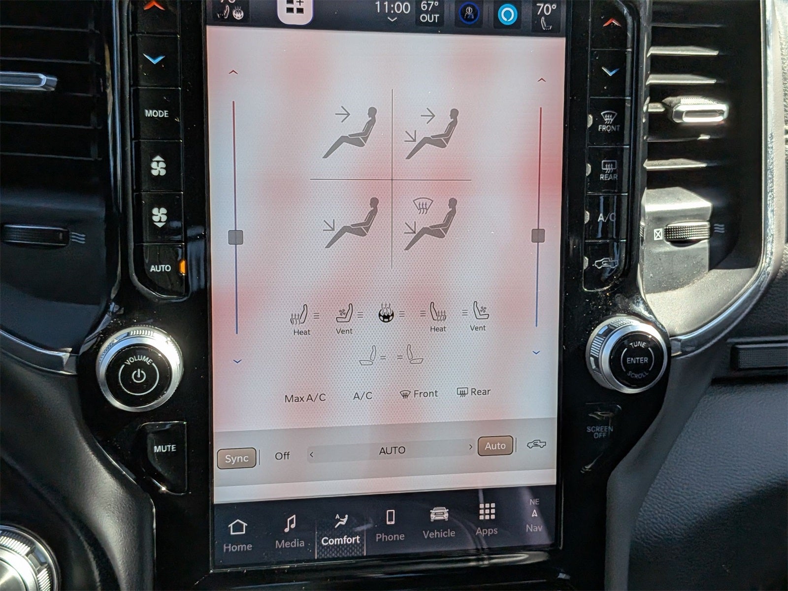 What makes us different? We specialize in hand selecting our pre-owned inventory and providing an amazing array of vehicles on our lot here in Wilmington, NC. We keep about 1000+ cars on the lot at any given time and find that being priced aggressively upfront allows us to save time, complete the deal process and keep the best inventory possible. The price you see is our very best price! All of our vehicles are priced below market value. We provide a hassle-free buying experience. Laramie Level 1 Equipment Group (Rain Sensitive Windshield Wipers and Remote Tailgate Release), Quick Order Package 21H Laramie, 10 Speakers, 3 Rear Seat Head Restraints, 3.55 Rear Axle Ratio, 4 Way Front Headrests, 4-Wheel Disc Brakes, 4G LTE Wi-Fi Hot Spot, ABS brakes, Air Conditioning, Alloy wheels, AM/FM radio: SiriusXM with 360L, Apple CarPlay, Apple CarPlay/Android Auto, Audio memory, Auto High-beam Headlights, Auto Power-Folding Mirrors, Auto-dimming door mirrors, Auto-Dimming Exterior Driver Mirror, Auto-dimming Rear-View mirror, Automatic temperature control, Brake assist, Bumpers: chrome, Chrome Exterior Mirrors, Compass, Connected Travel & Traffic Services, Connectivity - US/Canada, Convex Wide-Angle Exterior Mirror Insert, Delay-off headlights, Driver door bin, Driver Seat Memory, Driver vanity mirror, Dual front impact airbags, Dual front side impact airbags, Electronic Stability Control, Exterior Mirrors Courtesy Lamps, Exterior Mirrors w/Heating Element, Exterior Mirrors w/Memory, Exterior Mirrors w/Supplemental Signals, Front anti-roll bar, Front Center Armrest w/Storage, Front dual zone A/C, Front fog lights, Front License Plate Bracket, Front reading lights, Front Seat Back Map Pockets, Front wheel independent suspension, Fully automatic headlights, Garage door transmitter, Google Android Auto, GPS Antenna Input, GPS Navigation, HD Radio, Heated door mirrors, Heated Front Seats, Heated front seats, Heated rear seats, Heated Steering Wheel, Heated steering wheel, Illuminated entry, Integrated Voice Command w/Bluetooth®, Leather steering wheel, Leather Trim 40/20/40 Bench Seat, Low tire pressure warning, Manufacturer's Statement of Origin, Memory seat, Navigation System, Occupant sensing airbag, Outside temperature display, Overhead airbag, Overhead console, Panic alarm, ParkView Rear Back-Up Camera, Passenger door bin, Passenger vanity mirror, Power 2-Way Driver Lumbar Adjust, Power 2-Way Passenger Lumbar Adjust, Power Adjust 8-Way Front Passenger Seat, Power door mirrors, Power driver seat, Power passenger seat, Power steering, Power windows, Radio data system, Radio: Uconnect 5 Nav w/12.0 Display, RAM Grille Badge - Chrome, Rear anti-roll bar, Rear reading lights, Rear seat center armrest, Rear step bumper, Remote keyless entry, Security system, SiriusXM w/360L, Speed control, Split folding rear seat, Steering wheel mounted audio controls, Tachometer, Telescoping steering wheel, Tilt steering wheel, Traction control, Trip computer, Turn signal indicator mirrors, USB Host Flip, Variably intermittent wipers, Ventilated Front Seats, Ventilated front seats, Voltmeter, and Wheels: 20 x 9 Premium Paint/Polish. Awards: