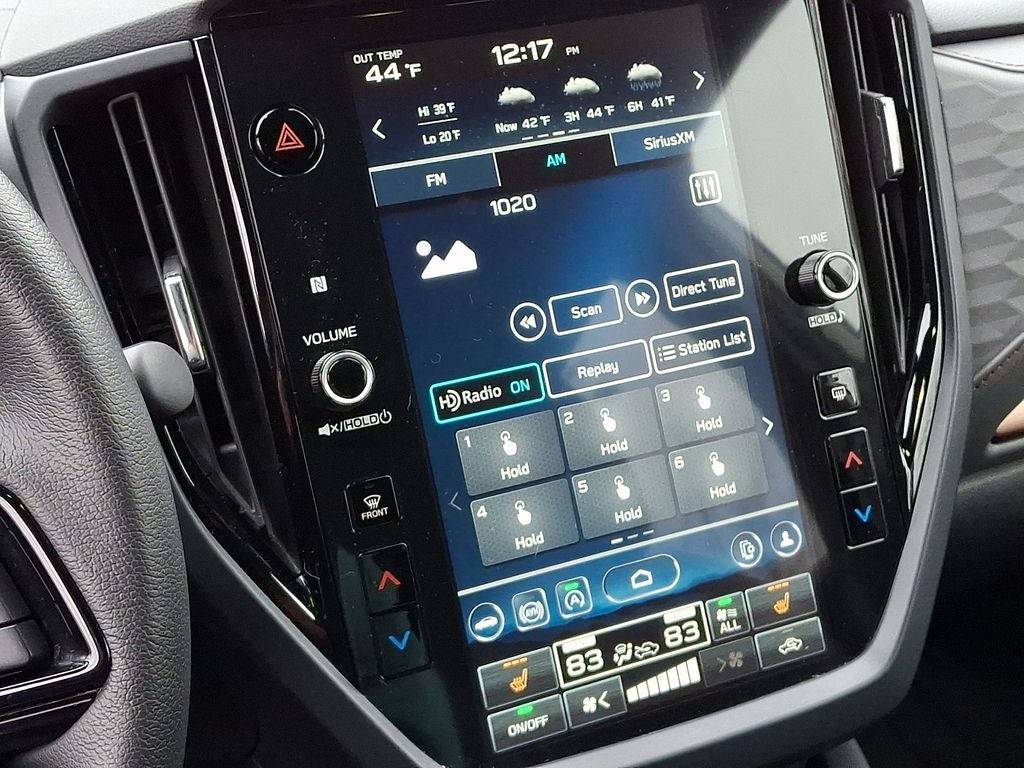- Radio: Subaru 11.6" Multimedia Plus System -inc: valet mode, integrated center information display, AM/FM stereo HD Radio, multi-touch gesture high resolution display screen, voice activated controls, Bluetooth® audio streaming and hands-free phone connectivity w/SMS text messaging connectivity (refer to subaru.com for cell phone compatibility), iPod control capability, SiriusXM w/360L (4 months free trial/subscription required after), SiriusXM Travel Link (3 years free trial/subscription required after), smartphone integration for Android Auto and Apple CarPlay w/full screen view and wireless connection, USB and Over The Air (OTA) audio system update, steering wheel control switches for audio and Bluetooth®, 6 speakers, 3.5mm auxiliary input jack and roof mounted audio and satellite antenna