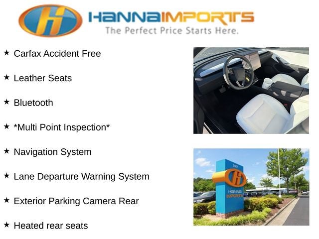 Why shop with Hanna Imports? We specialize in hand-selecting top-quality used cars, trucks, and SUVs for drivers across Raleigh, Durham, Cary, Chapel Hill, and the greater Triangle area of North Carolina. Our massive selection of 1,000+ vehicles on our Raleigh lot is carefully curated to include the most sought-after models, all priced below market value. We believe in transparency and efficiency—our vehicles are aggressively priced from the start, which means no haggling, no hassle, and no wasted time. The price you see is our absolute best price. Whether you're coming from Wake Forest, Apex, Garner, or anywhere in central NC, we’re committed to making your car-buying experience smooth, affordable, and enjoyable. Come see why Hanna Imports is one of the most trusted used car dealerships in North Carolina! Used Tesla Model 3 in Raleigh. Used Tesla Model 3 in North Carolina, Model 3 Long Range, Exterior Parking Camera Rear, Heated front seats, Heated rear seats, Lane Departure Warning System, Navigation System, 4-Wheel Disc Brakes, 9 Speakers, ABS brakes, Air Conditioning, Alloy wheels, Audio memory, Auto High-beam Headlights, Auto-dimming door mirrors, Auto-dimming Rear-View mirror, Automatic temperature control, Brake assist, Bumpers: body-color, Compass, Delay-off headlights, Driver door bin, Driver vanity mirror, Dual front impact airbags, Dual front side impact airbags, Electronic Stability Control, Emergency communication system, Four wheel independent suspension, Front anti-roll bar, Front Bucket Seats, Front Center Armrest w/Storage, Front dual zone A/C, Front reading lights, Fully automatic headlights, Heated and Ventilated Front Seats, Heated door mirrors, Heated steering wheel, HVAC memory, Illuminated entry, Knee airbag, Low tire pressure warning, Memory seat, Occupant sensing airbag, Outside temperature display, Overhead airbag, Passenger door bin, Passenger vanity mirror, Power door mirrors, Power driver seat, Power passenger seat, Power steering, Power windows, Radio data system, Radio: Base Audio System, Rain sensing wipers, Rear air conditioning, Rear audio controls, Rear reading lights, Rear seat center armrest, Rear window defroster, Security system, Speed control, Speed-sensing steering, Split folding rear seat, Steering wheel memory, Steering wheel mounted A/C controls, Steering wheel mounted audio controls, Telescoping steering wheel, Tilt steering wheel, Traction control, Trip computer, Variably intermittent wipers, Vegan Leather Seat Trim, Ventilated front seats, and Wheels: 18 x 8.5 Photon.