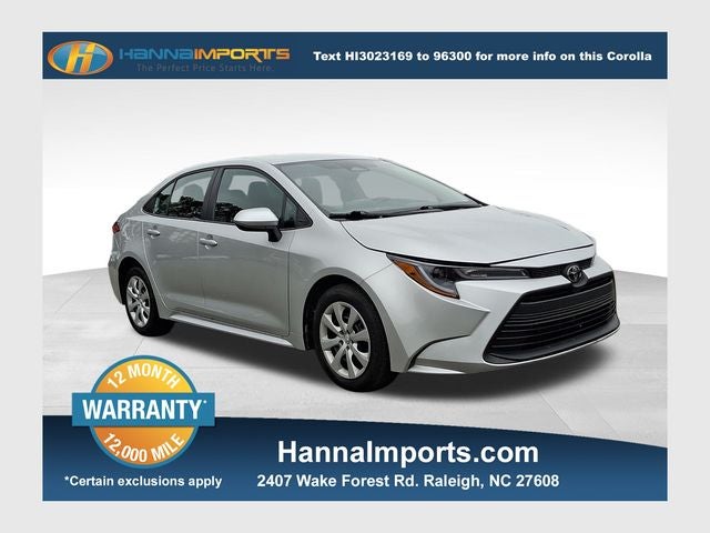 Why shop with Hanna Imports? We specialize in hand-selecting top-quality used cars, trucks, and SUVs for drivers across Raleigh, Durham, Cary, Chapel Hill, and the greater Triangle area of North Carolina. Our massive selection of 1,000+ vehicles on our Raleigh lot is carefully curated to include the most sought-after models, all priced below market value. We believe in transparency and efficiency—our vehicles are aggressively priced from the start, which means no haggling, no hassle, and no wasted time. The price you see is our absolute best price. Whether you're coming from Wake Forest, Apex, Garner, or anywhere in central NC, we’re committed to making your car-buying experience smooth, affordable, and enjoyable. Come see why Hanna Imports is one of the most trusted used car dealerships in North Carolina! Used Toyota Corolla in Raleigh. Used Toyota Corolla in North Carolina, Corolla LE, Exterior Parking Camera Rear, Remote keyless entry, 4-Wheel Disc Brakes, 6 Speakers, ABS brakes, Air Conditioning, AM/FM radio: SiriusXM, Apple CarPlay/Android Auto, Auto High-beam Headlights, Automatic temperature control, Brake assist, Bumpers: body-color, Delay-off headlights, Driver door bin, Driver vanity mirror, Dual front impact airbags, Dual front side impact airbags, Electronic Stability Control, Emergency communication system: Safety Connect (up to 10-year trial subscription), Fabric Seat Trim, Front anti-roll bar, Front Bucket Seats, Front Center Armrest, Front reading lights, Front wheel independent suspension, Fully automatic headlights, Illuminated entry, Knee airbag, Low tire pressure warning, Occupant sensing airbag, Outside temperature display, Overhead airbag, Panic alarm, Passenger door bin, Passenger vanity mirror, Power door mirrors, Power steering, Power windows, Radio data system, Radio: 8 Toyota Audio Multimedia, Rear anti-roll bar, Rear seat center armrest, Rear side impact airbag, Rear window defroster, Speed control, Split folding rear seat, Steering wheel mounted audio controls, Tachometer, Telescoping steering wheel, Tilt steering wheel, Traction control, and Trip computer.
